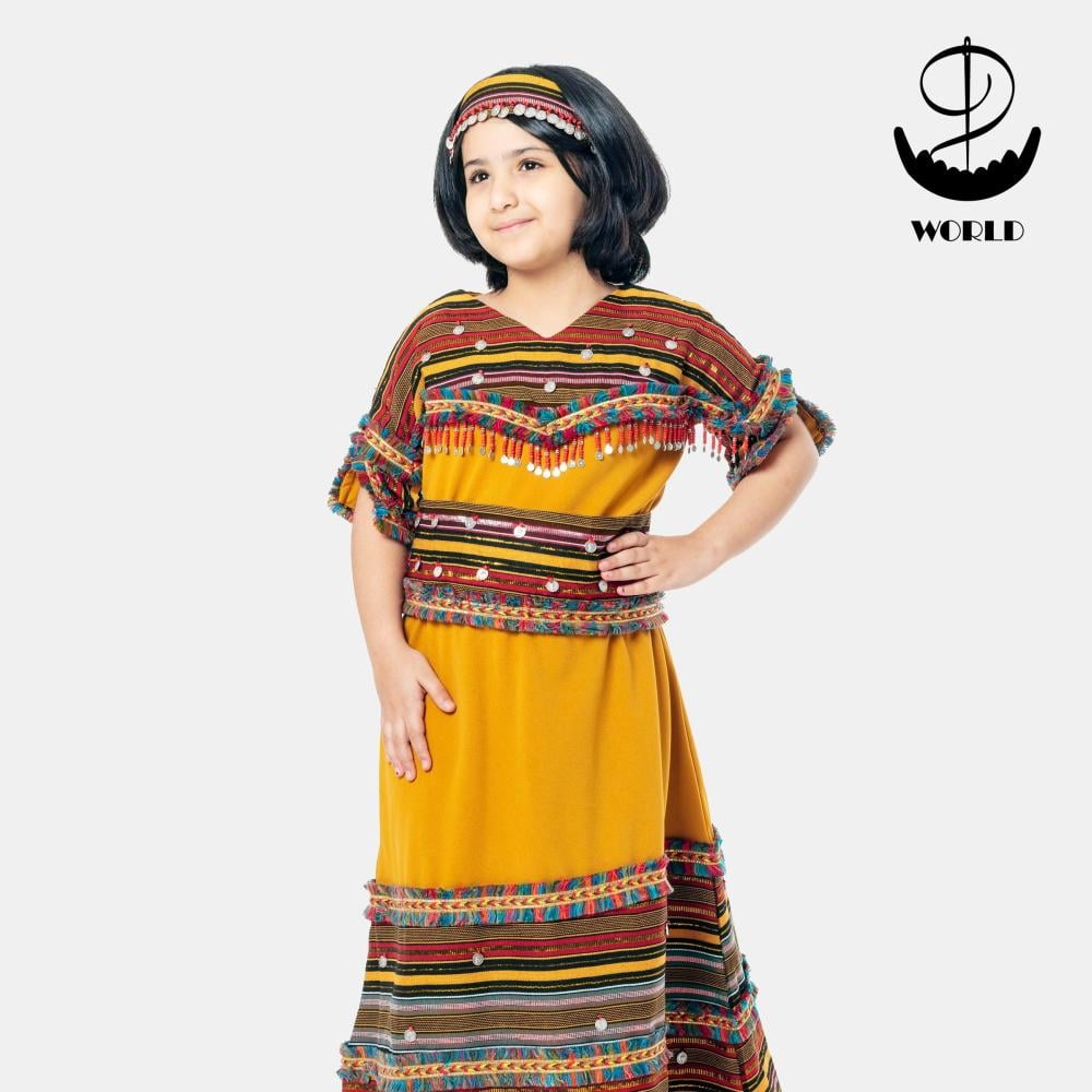 فستان أطفال مستوحي من التراث ذات لون مميز ومطعم بألوان متعددة